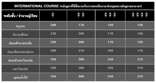 ** อัตราค่าเรียนที่แสดงในตารางนี้เป็นราคาสุทธิ ซึ่งรวมค่าใช้จ่ายทั้งการเดินทางขาไปและขากลับของผู้สอน รวมถึงเอกสาร